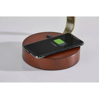 The Louie AdessoCharge Wireless Charging Table Lamp combines mid-century style with high-tech features. A thick walnut wood base encases a hidden Qi wireless charging pad. Just place your phone onto the wood base, and your phone will charge right up! Many phones have Qi technology built in already, but for those that don’t, a USB port is conveniently located right in the base as well. Antique brass metal is paired with an off-white fabirc shade, revealing a beautiful texture when lit. All Adesso lighting product is either UL or ETL listed, meaning that it has been tested and approved to meet the government-regulated safety standards for the USA. Bulb is not included.