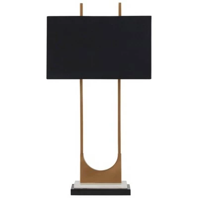 - Metal and marble with black fabric hardback shade