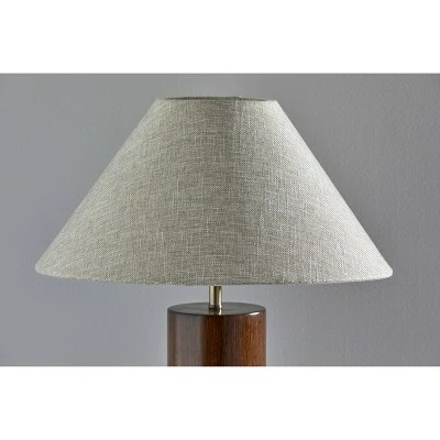 Spruce up your living space or bedroom with the Martin Table Lamp. Crafted of walnut poplar wood with a touch of antique brass metal, this lamp will add a classy touch of modern styling to your home. A retro inspired shade shape is comprised of natural textured fabric. Turn the lamp on and off with a convenient switch on the socket. All Adesso lighting product is either UL or ETL listed, meaning that it has been tested and approved to meet the government-regulated safety standards for the USA. Bulb is not included.