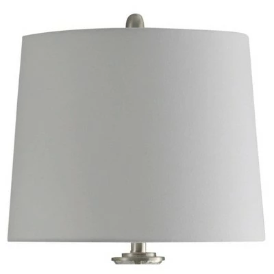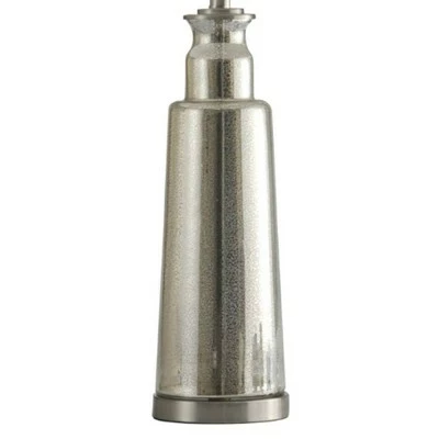 This silver and white table lamp pairs clean lines with luxe materials. The circular brushed steel base supports a graduated frame of silver mercury glass, and a white hardback shade sits at the top of the fixture. A stylish addition to an office desk, this silver table lamp also works well in a bedroom, hallway, dining room, or living room. Accent your home décor with this table lamp from the Signature Collection by StyleCraft Home Collection. This delightful lamp works wonderfully in practically any living room, home office or bedroom. This piece exemplifies superior product design and great styling. It will pair well with glam and contemporary styling. Regardless if you put it in the bedroom or family room, this table lamp stands out. Suitable for residential use in a dry location. This modern table lamp is UL listed in compliance with the nationally recognized safety standards.