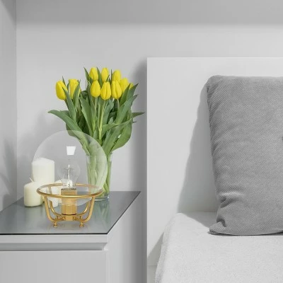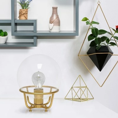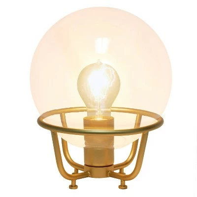 Illuminate your room in style with this modern table lamp! The clear globe glass shade located on this lamp is accented by a gold metal base for the perfect industrial look! It stands at 10 inches high, it is the perfect solution to freshen up your nightstand, end table or foyer.