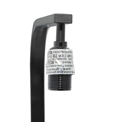 - Arch light lamp stem with a wide drum shade and rectangular base