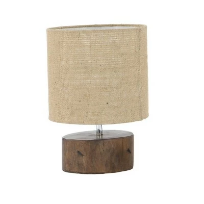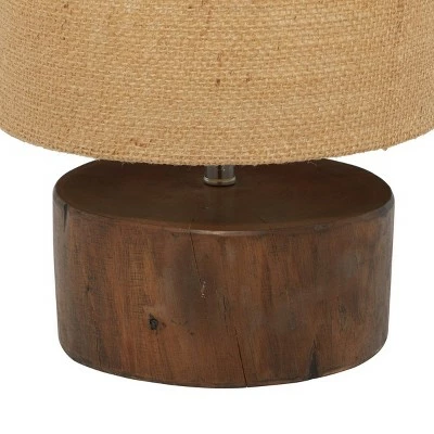 Let Mother Nature guide your interior decorating plans, starting with your lighting. This features a mahogany slab base that fits in perfectly with a natural themed bedroom, living room, or study. A beige jute shade sits above the base, offering a stylishly organic way to soften the lamp’s light. The lamp has a 10” width, which allows it to fit easily on an end table, desk, or bookcase. Designed with black rubber stoppers at the base that prevent scratching furniture and table tops, as well as sliding around. Uses one standard E26 light bulb (not included). This item has a 73” cord length. Suitable for indoor use only. A drum shaped shade made of linen. Convenient flip switch on electrical cord. Rustic theme. This item comes shipped in one carton.