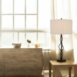 30.5 " Glass and Metal Table Lamp with Hardback Taper Drum Linen Shade Antique Brass – Cal Lighting