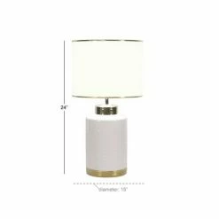 15" x 24" Large Contemporary Style Round Ceramic Table Lamp with Metallic Trim White/Gold – CosmoLiving by Cosmopolitan