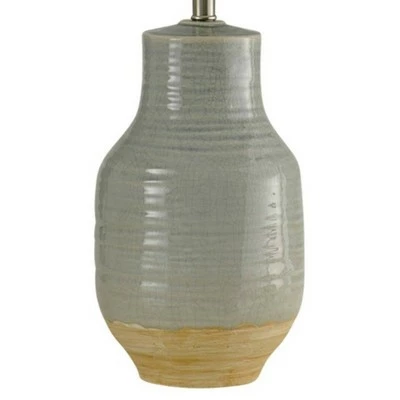 A stylish fixture with a neutral color scheme and three-way functionality, this table lamp has a ceramic frame and a hardback shade of white fabric. The finish on the frame is gray with a small section of beige at the bottom. A stylish accent for a bedroom nightstand or an office desk, this gray table lamp also looks great in a dining room, living room, or hallway. This metal table lamp uses an open metal hoop to frame out and give proportion to its look. A cool transitional look, it comes complete with a minimal hardback shade with a rolled edge for a clean finish. This piece exemplifies superior product design and great styling at an unbeatable price.