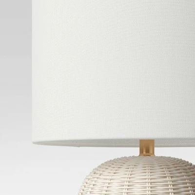 Illuminate any area in your home with this White Rattan Table Lamp from Threshold™. This rattan table lamp brings natural style to your indoor lighting. It features a woven textured base that’s fitted on a round wooden platform for added decorative flair. The white drum shade gives it a crisp modern look, while the 1-way lighting setting offers effortless illumination. Place it on a side table in your living room, lounge room or on the console table for endless display potential around your home.
