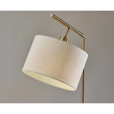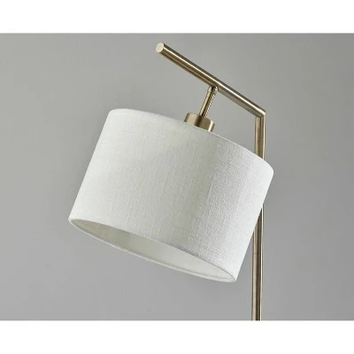 The Reynolds table lamp illuminates any space with its simple, geometric architecture that suits contemporary, mid-century modern, or industrial styles. At 25″ tall, this lamp fits perfectly on desks, nightstands, end tables, or accent tables. The lamp features a rectangular antique brass base supporting a thin, matching stem. The top of the stem angles to support a 10″ diameter x 6.5″ tall drum shade made of textured white fabric to softly diffuse the light from a 60W bulb (not included). Easily turn the lamp on or off with a rotary socket switch. Complete your space’s décor with the coordinating Reynolds floor lamp.