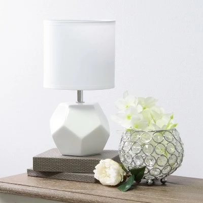 A lovely, inexpensive, and practical table lamp that will meet your basic fashion and lighting needs. This mini lamp features a colored geometrical base and fabric shade with an easily accessible rotary switch that is located on its cord.. This lamp is perfect for living room, bedroom, office, kids room, or college dorm!