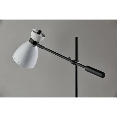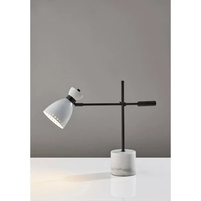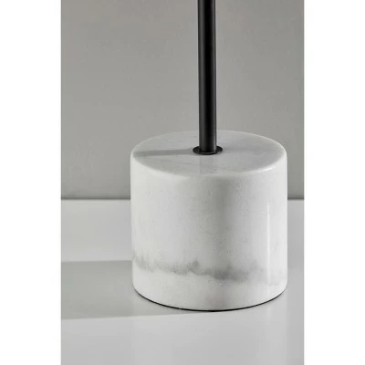 Black and white metal finishes make up the composition of the Sadie Desk Lamp. Adjust the arm up and down and use the 360 degree swivel on the shade to focus the light directly where it is needed. A chunky white marble base elevates the look while providing a heavy, stable stance for this upscale, contemporary desk lamp. A simple on/off switch is located on the shade. Set this lamp on your desk or next to your favorite reading chair to add style and efficience.