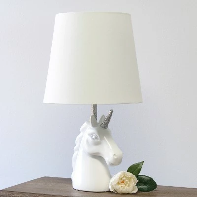 Add a touch of personality to your décor with this fun and exciting unicorn lamp! With a white resin base and touches of shimmering silver glitter this lamp is sure to illuminate any room in style. This lamp would be perfect for bedrooms, kids and teens, college dorms or nurseries!