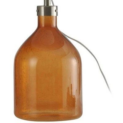 The base of this lamp features amber-colored glass with a silver neck and a matching finial. The beige hardback fabric shade is a beautiful complement to the glass base. Enhance the décor in a hallway, bedroom, dining room, office, or living room with this amber glass lamp. Accent your home décor with this table lamp from the Signature Collection by StyleCraft Home Collection. This glass lamp works wonderfully in practically any living room, home office or bedroom. This piece exemplifies superior product design and great styling. It will pair well with farmhouse styling. Regardless if you put it in the bedroom or family room, this table lamp stands out. Suitable for residential use in a dry location. This modern table lamp is UL listed in compliance with the nationally recognized safety standards.