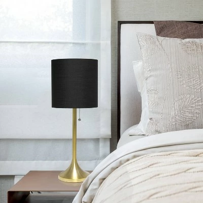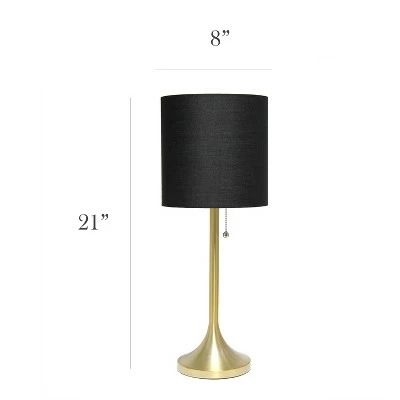 This fun and fashionable desk/task lamp features a gold metal base and black fabric drum shade making it the perfect addition to your lighting needs. This lamp will add simplicity and style to any space in your home. Perfect for bedrooms, kids and teens, college dorms, nurseries, or fun offices!