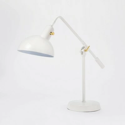 Bring ambient lighting to your work station with this Cantilever Task Table Lamp from Threshold™ designed with Studio McGee. This LED lamp features a round base, a slender body and a dome-shaped shade to add a stylish touch to your desk or end table. The metal desk lamp features an adjustable arm so you can find the angle that offers the best light for going over paperwork or reading a book. You’ll appreciate its dimmer effect that lets you adjust the amount of light and helps change the visual appearance and mood of your space. Place it on top of an end table next to a cozy chair or on top of your desk for an effortless look you’ll love.