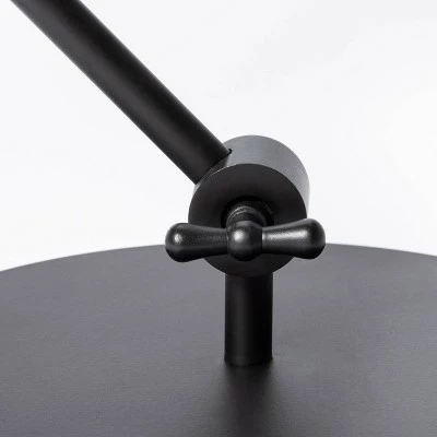 Add some industrial flair to your home lighting with the Metal Dome Desk Lamp from Threshold™ designed with Studio McGee. Crafted from metal, this freestanding desk lamp features a slender tubular body in black for polished appeal, and it has a hinged design for adjusting the height. The round base provides stability, while the white dome-shaped metal shade is directed downward, allowing you to focus light wherever you need it, making it perfect for your reading room or home office.