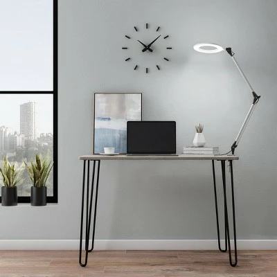 The Clamp-On Architect Lamp by Hastings Home is a modern minimalist-inspired light fixture offering total adjustability and excellent natural daylight LED illumination. With a maximum reach of 42-inches, this lamp can be positioned at any angle with its double-hinged rotating arm, flexible head and sturdy metal clamp that can be attached to any desk, table, or headboard up to 2.5″ thick. Great for home offices, studies and nightstands, the LED light ring has a CRI of 95 and a stepless dimming switch that offers reduced eyestrain while performing just about any task.