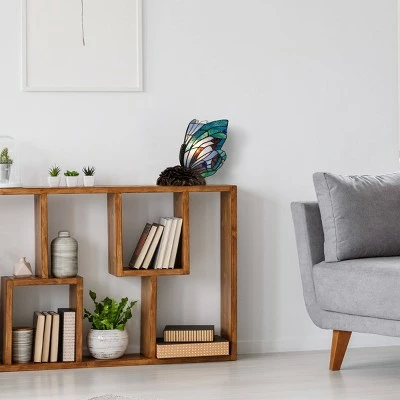 The Tiffany Style Butterfly Lamp from Hastings Home illuminates your space while adding a touch of elegance to your home. Designed with 68 stained glass pieces and 8 cabochon accents, this handcrafted lamp is sure to provide a soft ambient light that is perfect for your living room, entryway, bedroom, or office.