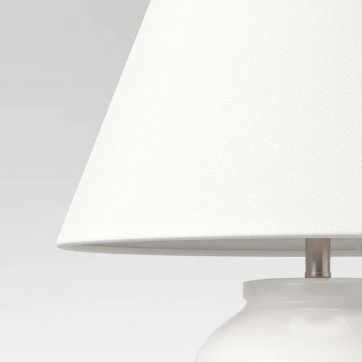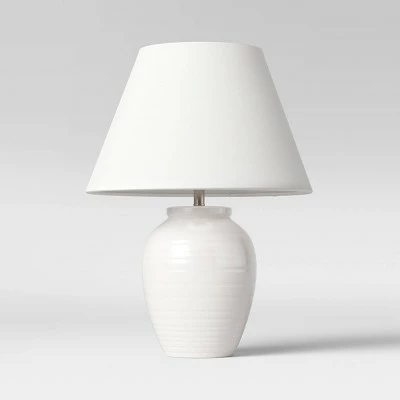 Light up any space with this White Turned Ceramic Table Lamp from Threshold™. This ceramic table lamp base makes a great addition to your indoor lighting. It features a white base with a turned textured effect, and a matching empire shade to finish off the fresh look. This simple table lamp comes with a simple on/off switch for effortless illumination, and it includes 1 LED bulb for immediate use. Place it on a side table in your living room, lounge room or on the console table for endless display potential around your home.