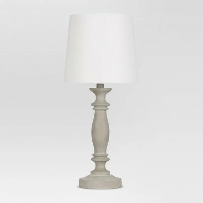 Complete the look of your space with the Turned Table Lamp from Thresholdâ„¢. The curves of the neutral, turned base are complemented by the crisp lines of the drum shade. Add to your reading nook for some extra light or place in your entryway for a warm glow to greet your guests.