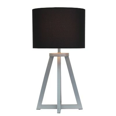 Add a touch of simplicity to your home with this contemporary lamp. It has a soft, black fabric shade that compliments the geometric gray wood base and clear cord for a clean, simple look. This is the perfect lamp for a bedroom, living area, office, kid’s room or college dorm.